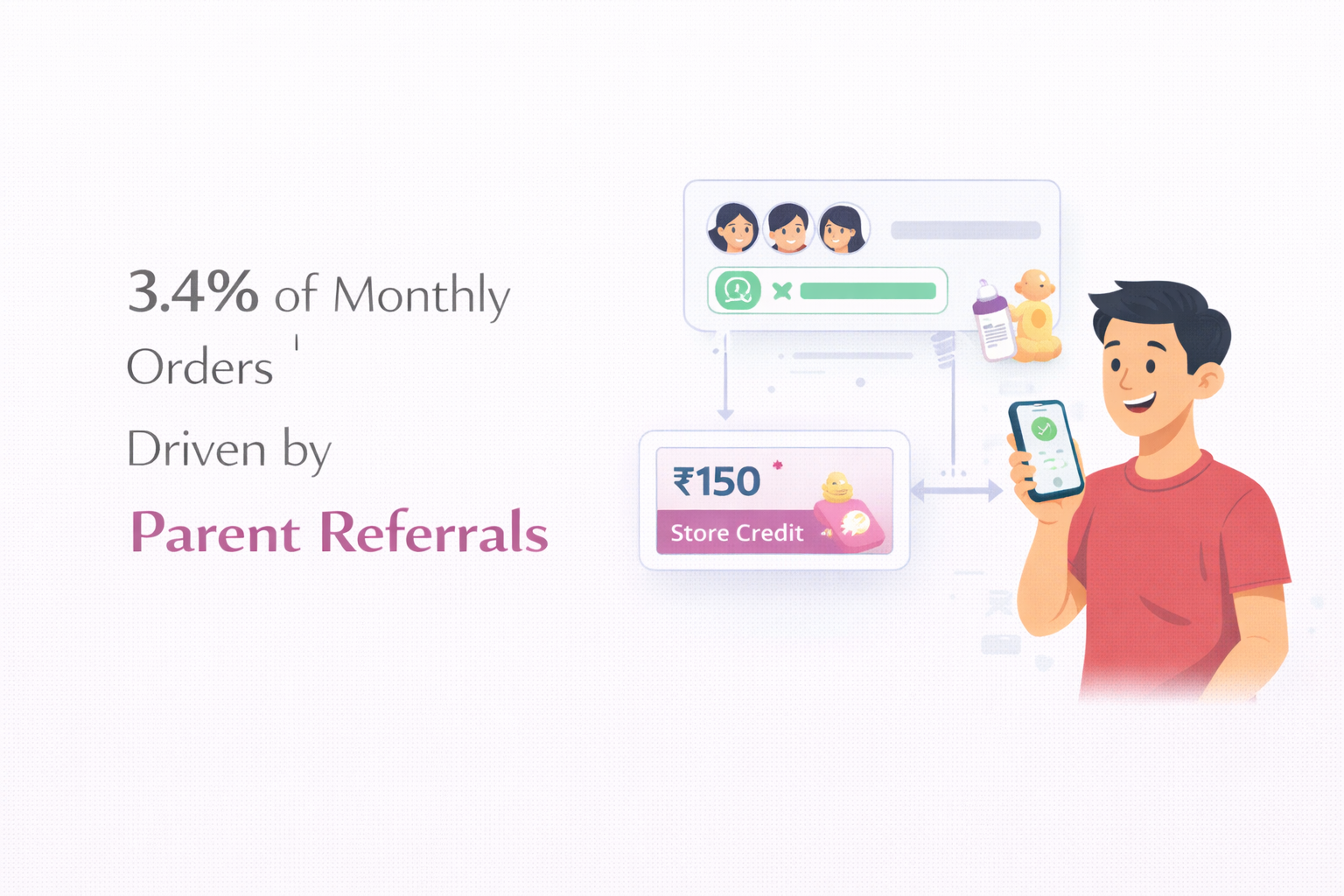 Parent-to-parent referrals through WhatsApp groups became a sustainable growth channel for this baby care brand.