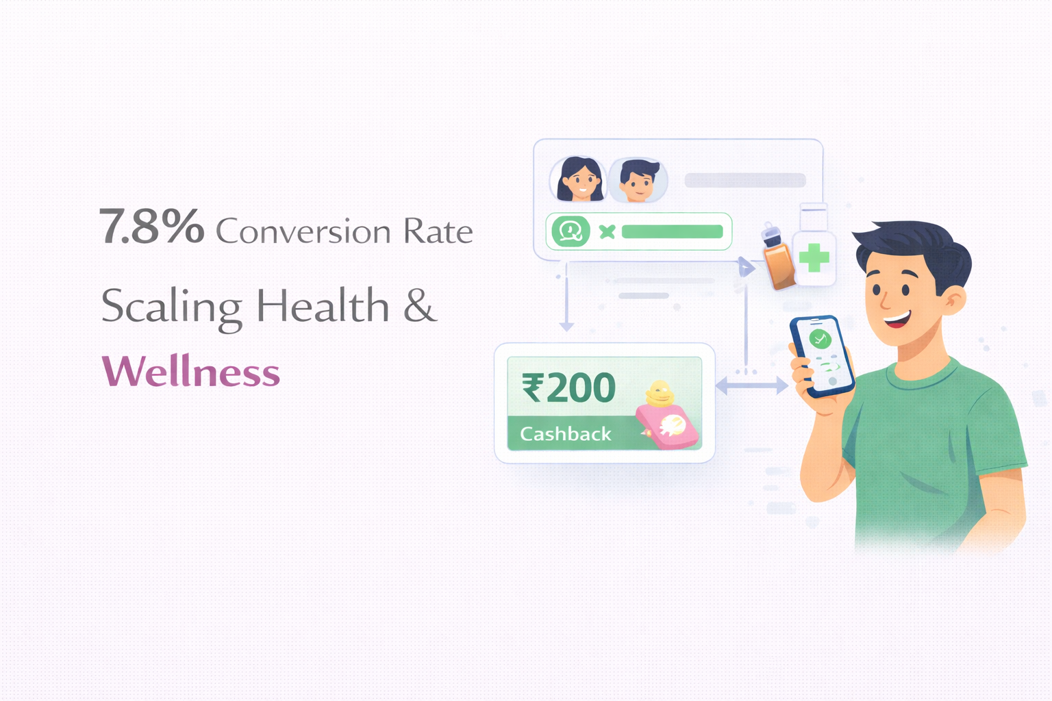 A health & wellness brand achieved exceptional conversion rates by making referrals effortless with WhatsApp sharing and real cashback rewards.